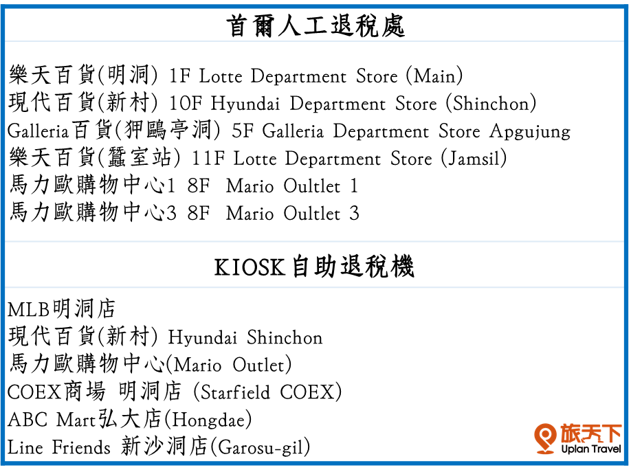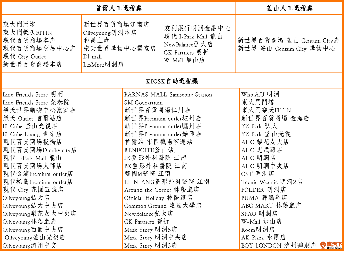 韓國退稅以機場為主,分成以下兩種