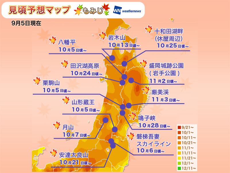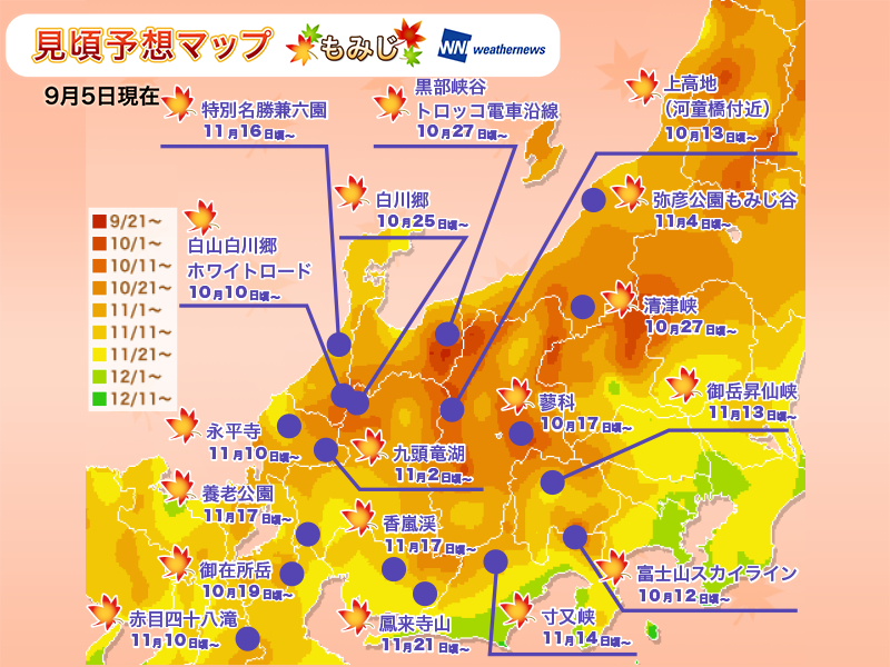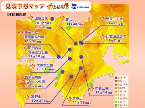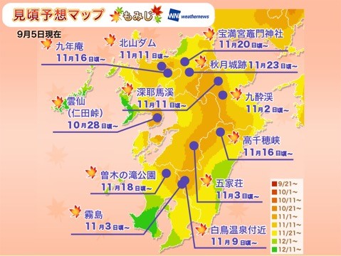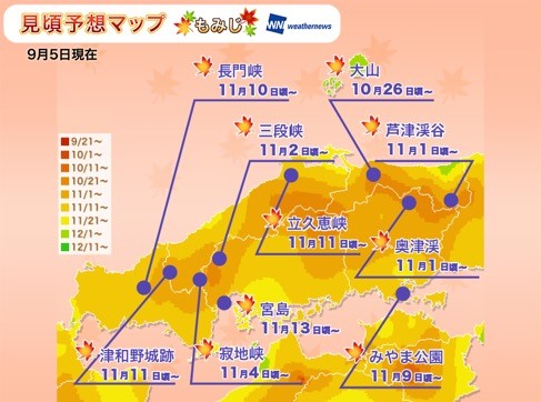 西日本的楓葉季預計和往年一樣,所以大家就不用擔心的飛出去吧!