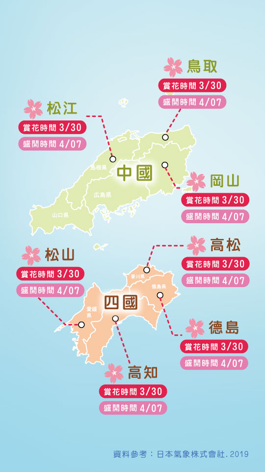 3月~5月逐漸展開櫻花盛宴