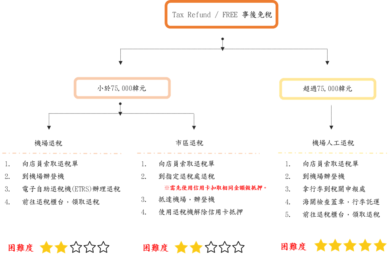 韓國的退稅方法主要分成三種,先簡單歸類,大家也可以看看下方的詳細介紹